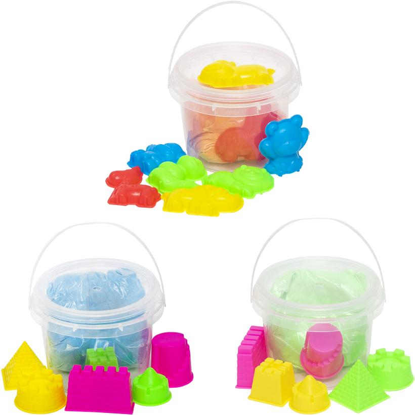 Песок Кинетический в ведре + 5 пасочек цвета микс 300гр 88817