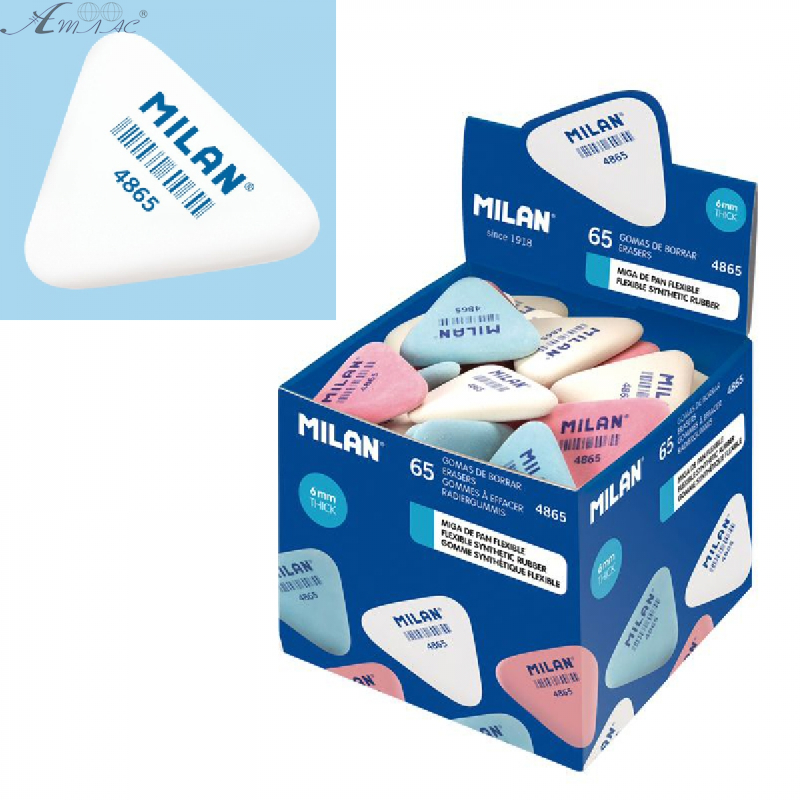 Ластик Milan 4865CNM эргономичной треугольной формы из синтетического каучука размером 36 х 33 х 6 мм. Неабразивный, предназначенный для графитных карандашей. Не повреждает бумагу даже низкого качества и плотности. Цвета: микс. Фактический цвет может отличаться от изображенного на фото.