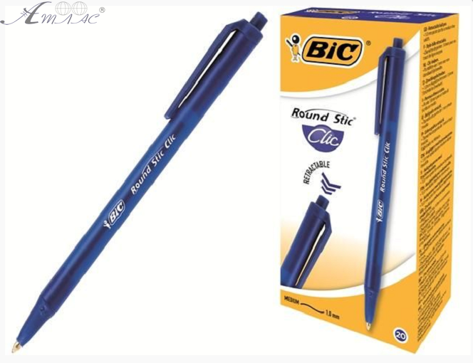Ручка шариковая BIC Round Stic Clic Синяя 1 мм  926376