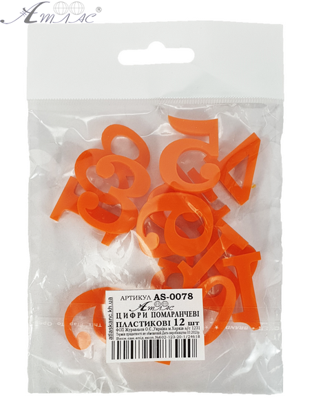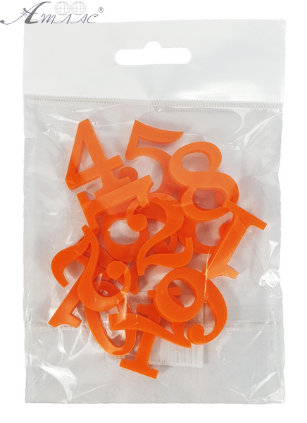 Пластиковые Цифры арабские 12шт оранжевые 3мм h=3см AS-0078