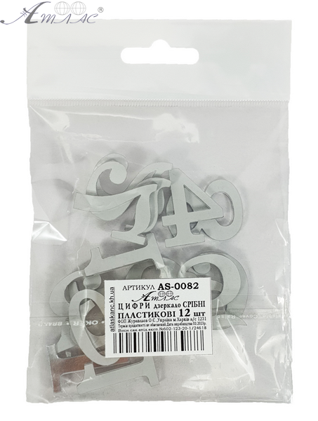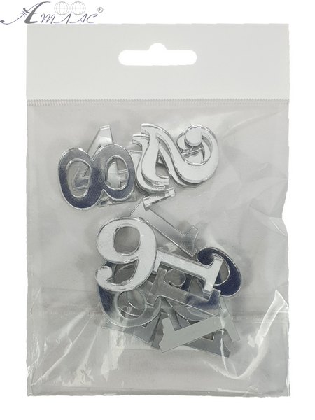 Пластиковые Цифры арабские 12шт ЗЕРкальные серебро 2мм h=3см AS-0082