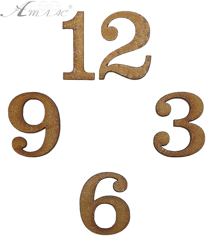Набор содержит четыре арабские цифры (3, 6, 9, 12), изготовленные из МДФ толщиной 3 мм (экологически чистого материала, состоящего из спрессованной под температурой древесной стружки без химических примесей). Фактический оттенок изделия может отличаться от изображенного на фото.