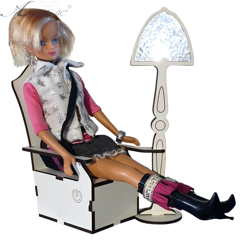 Данная модель кресла с торшером изготовлена из МДФ (экологически чистого материала, состоящего из спрессованной под температурой древесной стружки без химических примесей). Она оборудована светодиодной подсветкой, которая питается от двух батареек типа АА, и может быть включена/выключена легким прикосновением в указанном месте. Игрушечная мебель предназначена для кукол типа "Барби" ростом приблизительно 30 см. Она предлагается в широком разнообразии вариантов, которыми можно обставить кухню, гостиную или спальню кукольного домика. Фактический вид изделия может отличаться от изображенного на фото.