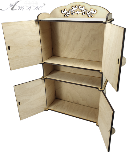 Игрушечная мебель Атлас Шкаф № 4 19 х 7.5 х 33.3 см из фанеры. Модель оборудована четырьмя отделениями с подвижными дверцами. Игрушечная мебель предназначена для кукол типа "Барби" ростом приблизительно 30 см. Она предлагается в широком разнообразии вариантов, которыми можно обставить кухню, гостиную или спальню кукольного домика. Фактический цвет изделия может отличаться от изображенного на фото.