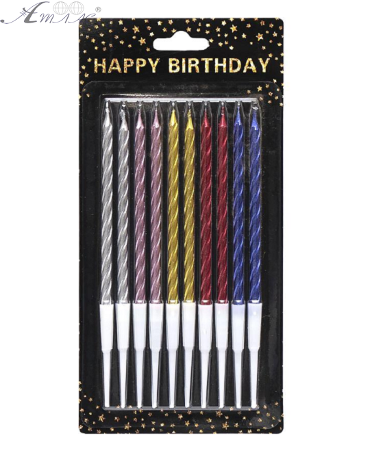 Свечи Металлик набор, 10 шт свечек, 10 шт держателей, 10см в блистере 1046