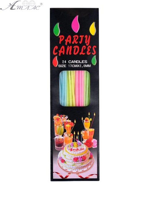 Свечи Набор 24 шт 17 см, неон, тонкие в блистере 10-88