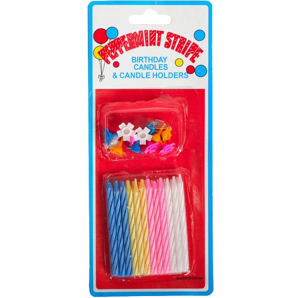 Свечи набор, 24 шт. свечек 5,5см длинной + 12 шт. держателей, в блистере 13307. Такие свечи яркие и безопасные, применяются для тортов и пирогов. Фактический цвет товара может отличаться от изображенного на фото.