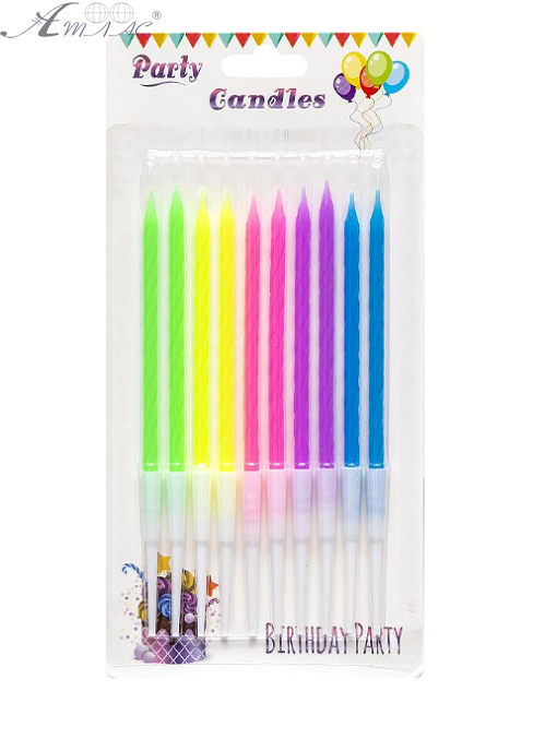 Свечи неоновые набор, 10 шт свечек, 10 шт держателей, в блистере  06356