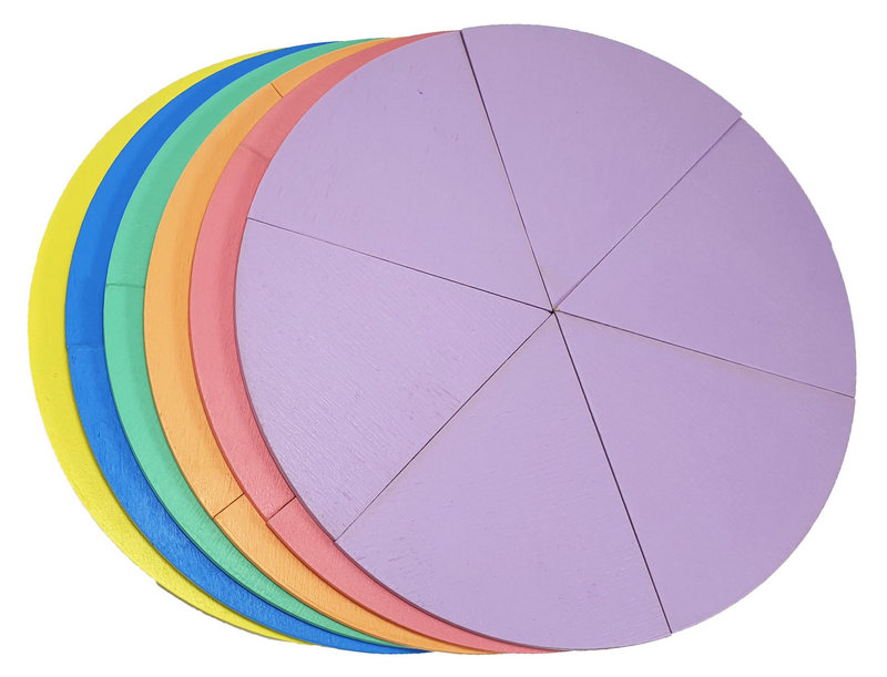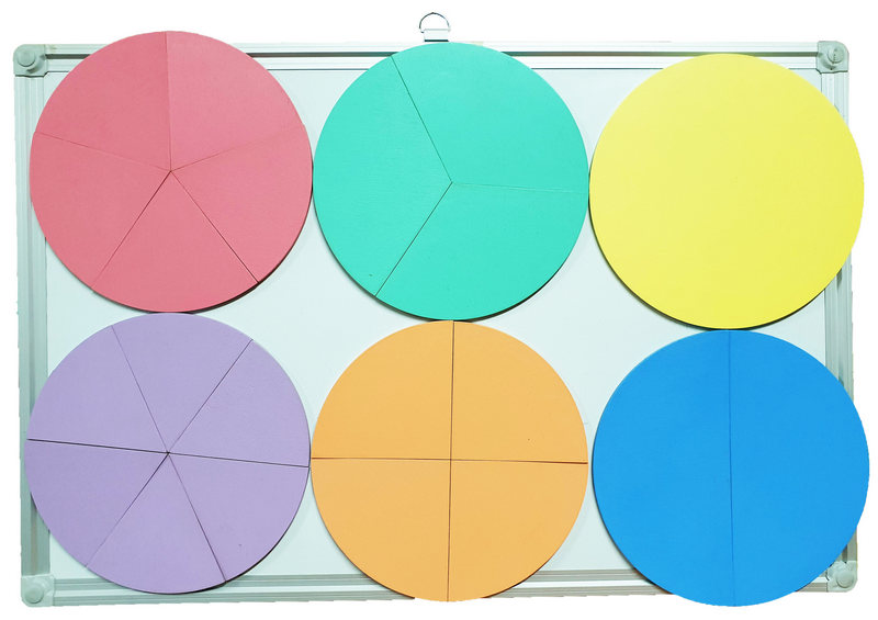 Дроби учебные от 1 до 6 частей d = 20 см ЦВЕТНЫЕ на магнитах из фанеры AS-7108, О-00015