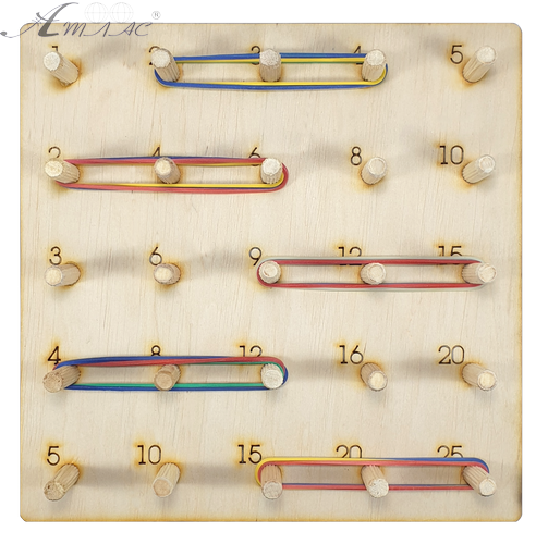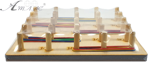 Игрушка развивающая.Планшет Математический 20 х 20 см с Цифрами, 25 Деревянных стоек + 15 резинок AS-7148
