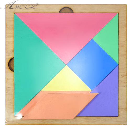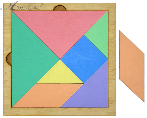 Танграм ЦВЕТНОЙ с двух сторон из фанеры на МДФ основании 20 х 20 см AS-7145