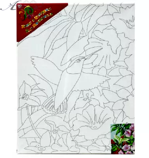 Полотно з контуром Пташка - Колібрі на підрамнику 30 х 40 см 951019