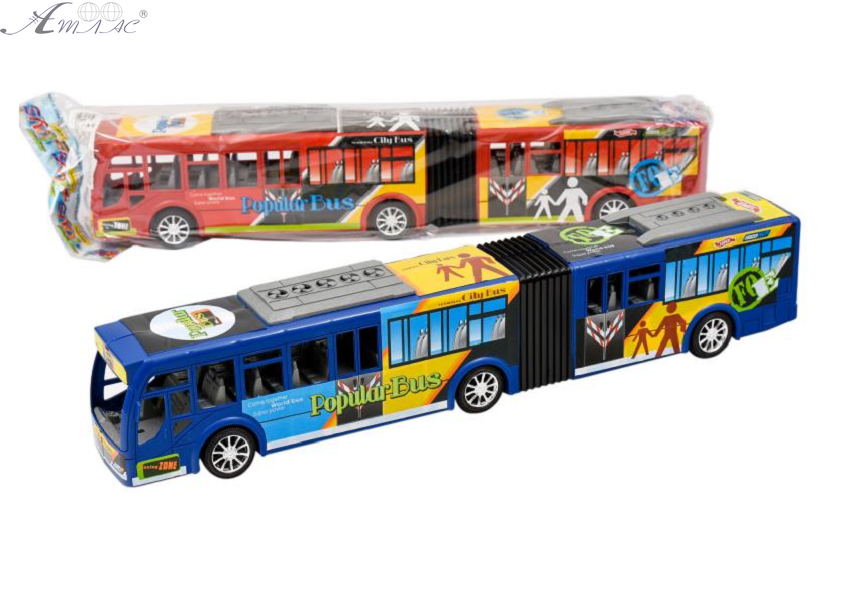 Автобус інерційний, пластиковий розміром 54см. Запакований у пакет. В наявності Червоний і синій колір. Фактичний відтінок виробу може відрізнятися від представленого на фотографії через особливості кольору екрану.