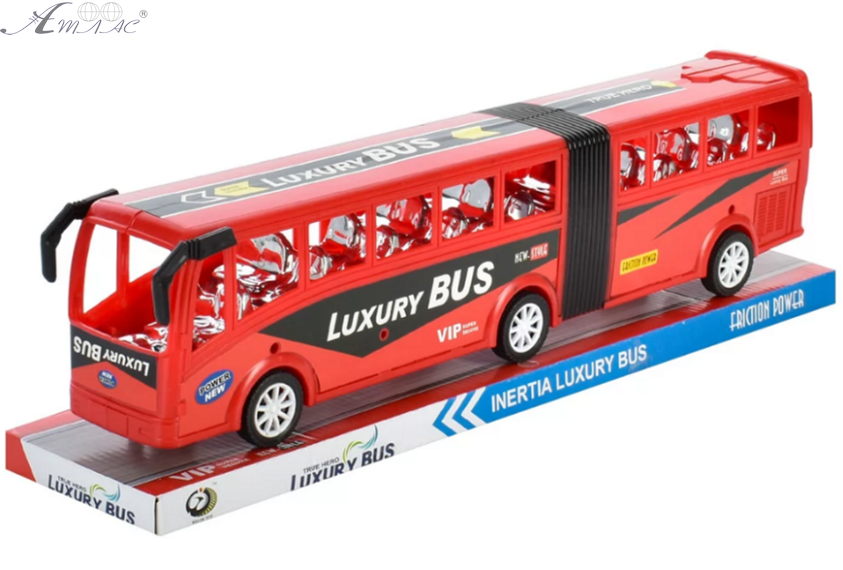 Автобус інерційний, пластиковий розміром 46см. Упакований в блістер. Фактичний відтінок виробу може відрізнятися від представленого на фотографії через особливості кольору екрану.