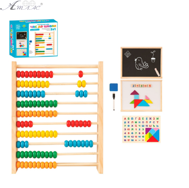 Іграшка дерев'яна Час до школи 2в1 Укр. мова рахунки + дошка магнітна  MD1601