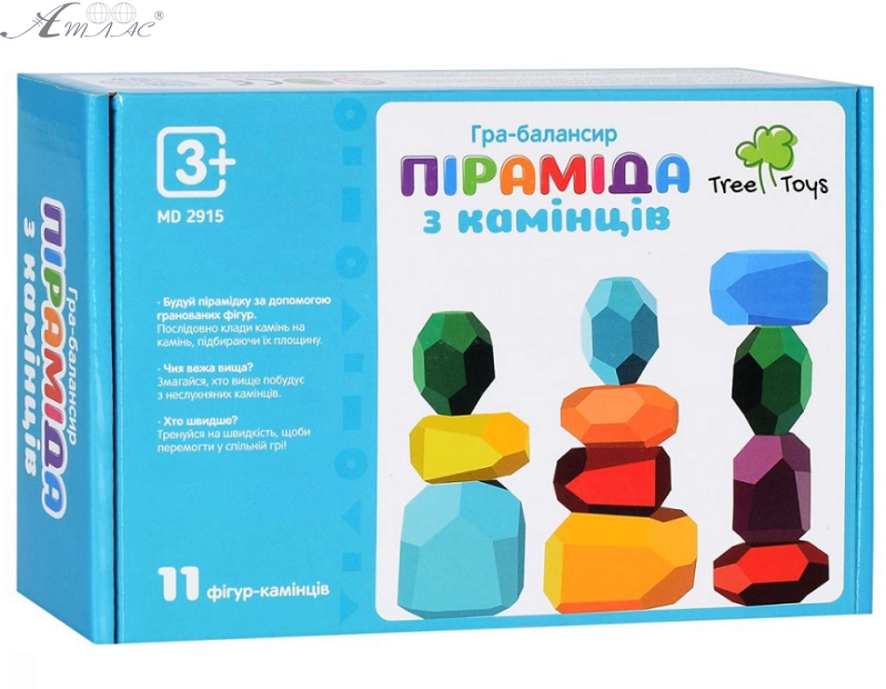 Іграшка Дерев'яна Пірамідка з камінців 11 фігур MD2915