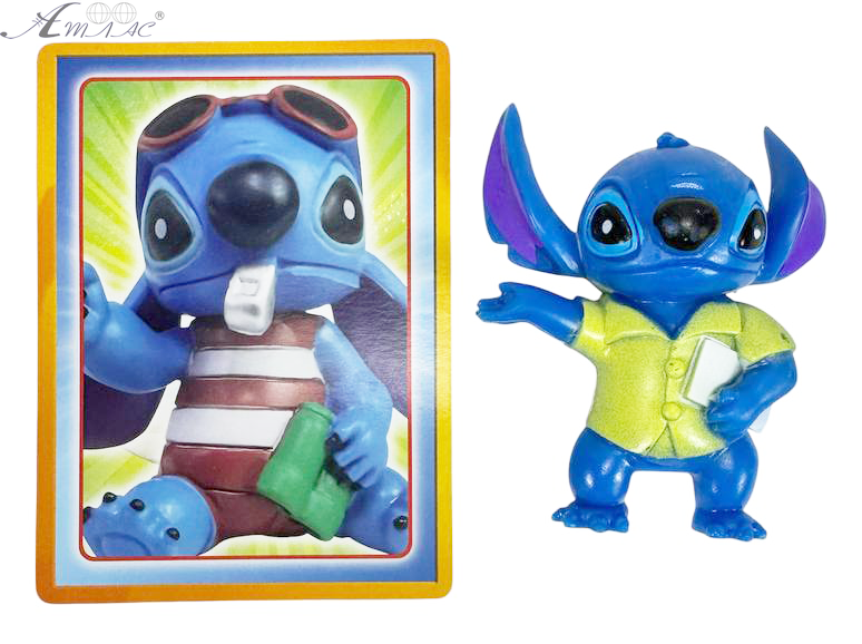 Фігурка з карткою створена за мотивами популярного мультфільму "Ліло та Стіч". Іграшка-фігурка Стіч у жовтому піджаку. Розмір фігурки від 5 до 6 см. Фактичний відтінок виробу може відрізнятися від представленого на фотографії через особливості кольоропередачі екрану.