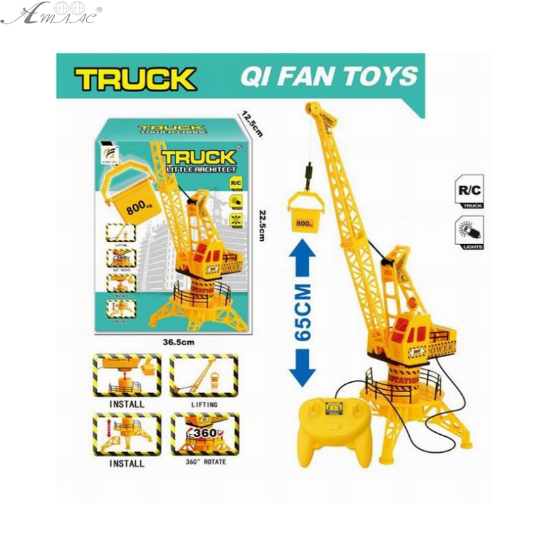 Кран висотою 65см на пульті керування. Вежа повертається. Вантаж піднімається та опускається за допомогою пульта. Повертається на 360 градусів, щоб переміщати предмети туди, де вони мають бути. Розмір упаковки: 31 х 25 х 12,5 см Фактичний відтінок виробу може відрізнятися від представленого на фотографії через особливості кольоропередачі екрану.