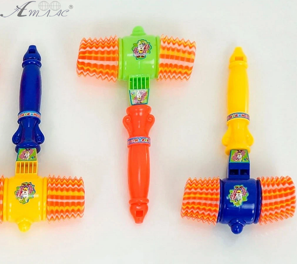 Іграшка Молоток-пищалка, класична розвиваюча гра для малюків. При ударі молоток видає дзвінкий писклявий звук. Виготовлений з легкого пластику, бойки (ударні частини) порожнисті та м'які. Іграшка відрізняється яскравим забарвленням, яке привертає увагу дитини. Допомагає розвивати координацію рухів, слухове сприйняття та хапальний рефлекс. Довжина складає 25 см. Поставляється у сітці. Фактичний відтінок виробу може відрізнятися від представленого на фотографії через особливості кольоропередачі екрану.