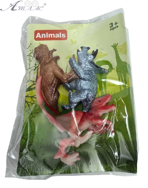 Набір різних динозаврів. У наборі три маленькі, тверді динозаврики розмірами 5 - 6 см. В наявності два види. Фактичний відтінок товару може відрізнятись від зображеного на фото.