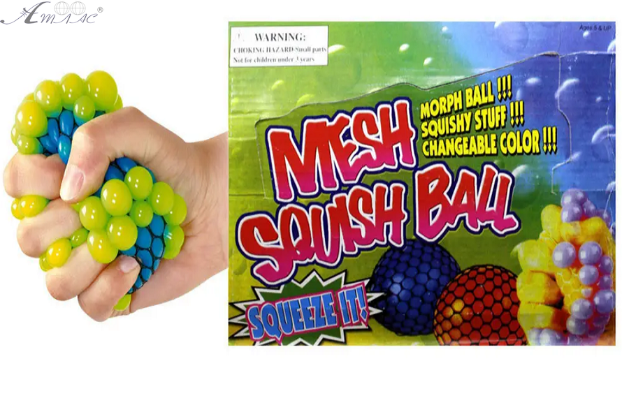 Кулька у сітці антистрес, призначений для зняття напруги. Діаметр приблизно 6 см. При стисканні м'ячика внутрішній гель видавлюється через осередки сітки, утворюючи бульбашки, викликаючи приємні тактильні відчуття. Фактичний відтінок виробу може відрізнятися від представленого на фотографії через особливості кольоропередачі екрану.