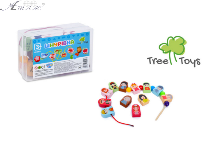 Іграшка Шнурівка дерев'яна Сім'я у пластиковому боксі MD0811