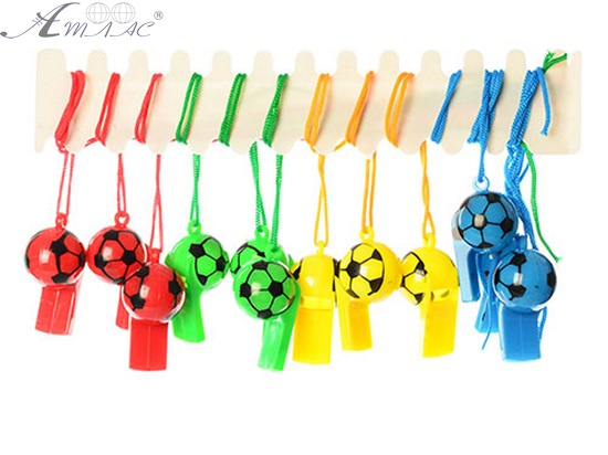 Свисток пластиковий, футбольний м'яч на мотузці. Кольори мікс. Розмір свистка 50 х 30 мм. Фактичний відтінок виробу може відрізнятися від представленого на фотографії через особливості кольоропередачі екрану.
