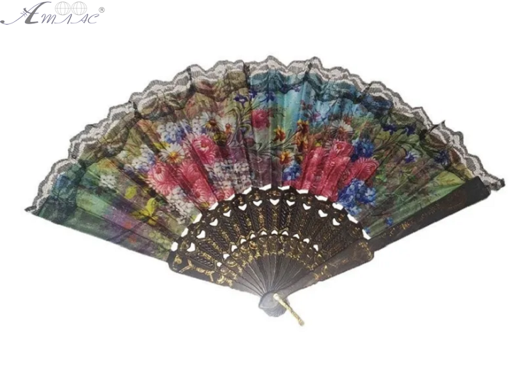 Віяло з тканини з пластиковою основою складається з пластикових пластин, скріплених у головці віяла спеціальним заклепуванням. Довжина Віяла 23 см у складеному стані. Фактичний відтінок виробу може відрізнятися від представленого на фотографії через особливості кольоропередачі екрану.