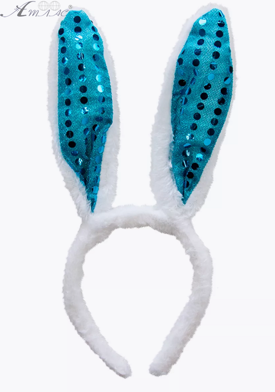 Іграшки Обруч Вушки Зайчики хутряні з паєтками 26см блакитні 04899