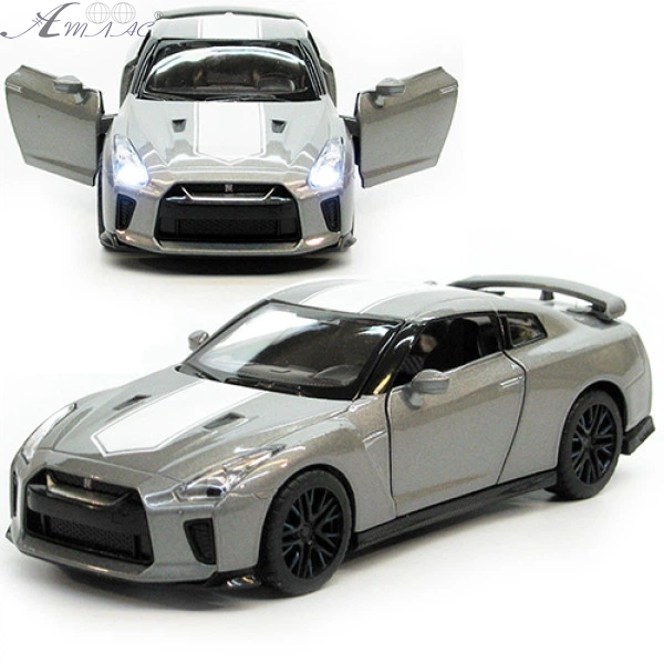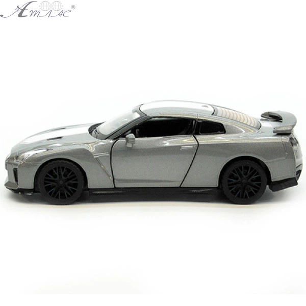 Машинка Автопром Nissan GT-R R35 Сіра метал світло звук 13см 68469