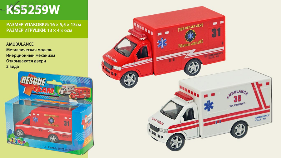 Машинка модель Kinsfun, Швидка допомога Червона  KS5259W