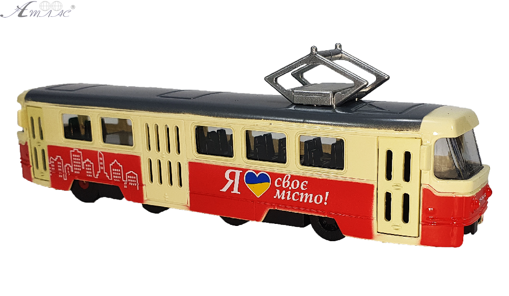 Модель АвтоХіт Трамвай 18см метал жовто-червоний 13945