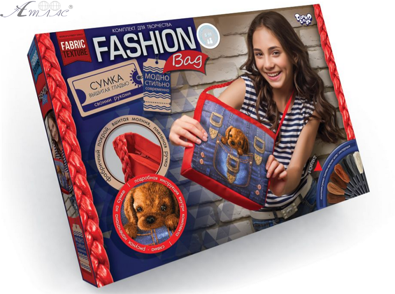 Набір для творчості Danko Toys Fashion Bag дозволяє створити сумку з вишивкою своїми руками. Комплект містить: - зшиту з тканини сумку з надрукованим малюнком-схемою; - голка; - набір різнокольорових ниток муліне; - Інструкція. Розміри упаковки: 250 x 370 x 70 мм. Фактичний відтінок виробу може відрізнятися від представленого на фотографії через особливості кольоропередачі екрану.