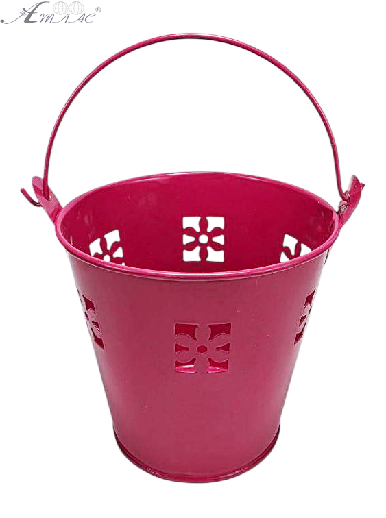 Відерко Декоративний метал 9,5 х 9,5см Диз № 5 проріз квітка Червоне 09444