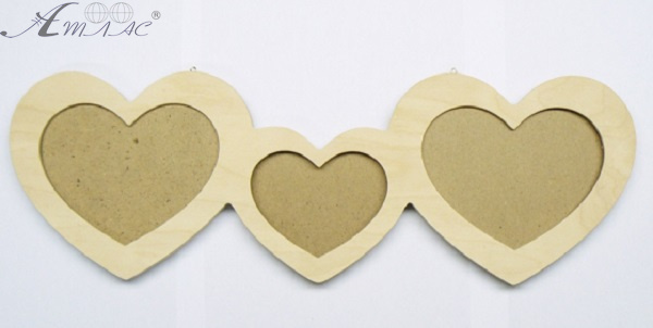 Дерев'яна Фоторамка з 3-х частин Сердечки 0385