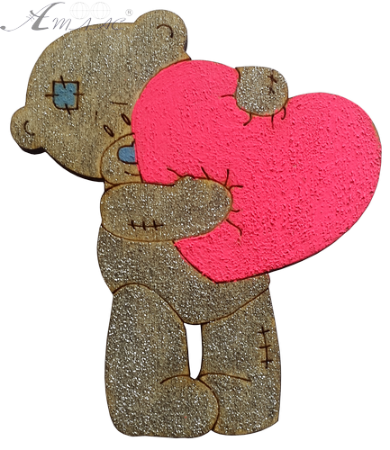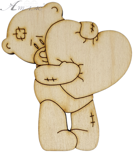 Фігурка фанерна - Ведмедик із серцем 6,9 см AS-4685, В-0246