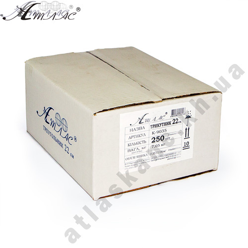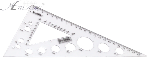 Даний трикутник виготовлено з прозорого пластику зі шкалою довжиною 22 см. Його додатково обладнано транспортиром. Розміри виробу 24 х 14 х 0,2 см.