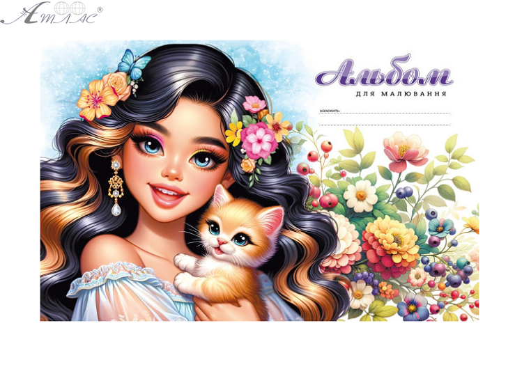 Альбом для малювання А4 24 аркуша скоба МД Дівчинка з кошеням 24126