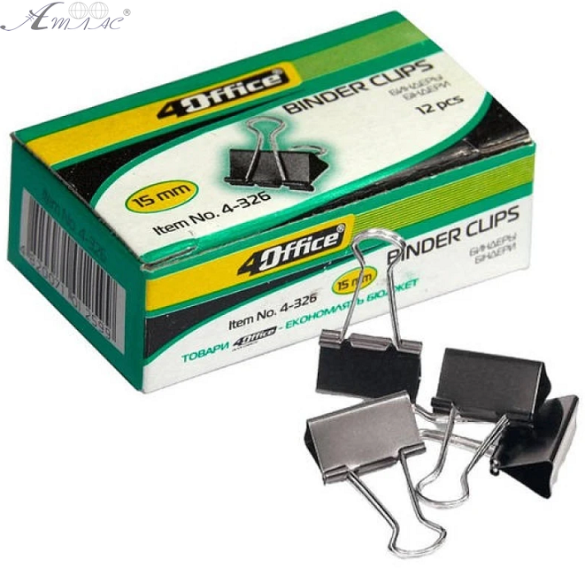 Біндер канцелярський 4OFFICE 15мм шириною. Продається упаковкою у якій 12 шт біндерів. Фактичний відтінок виробу може відрізнятись від зображеного на фото.