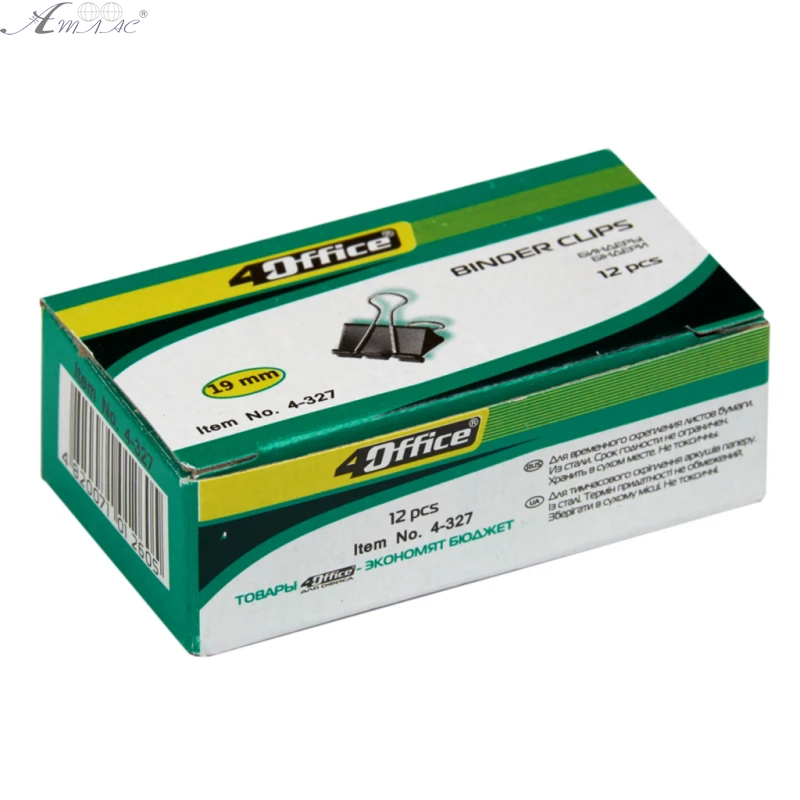 Біндер канцелярський 4OFFICE 19мм шириною. Продається упаковкою у якій 12 шт біндерів. Фактичний відтінок виробу може відрізнятись від зображеного на фото.