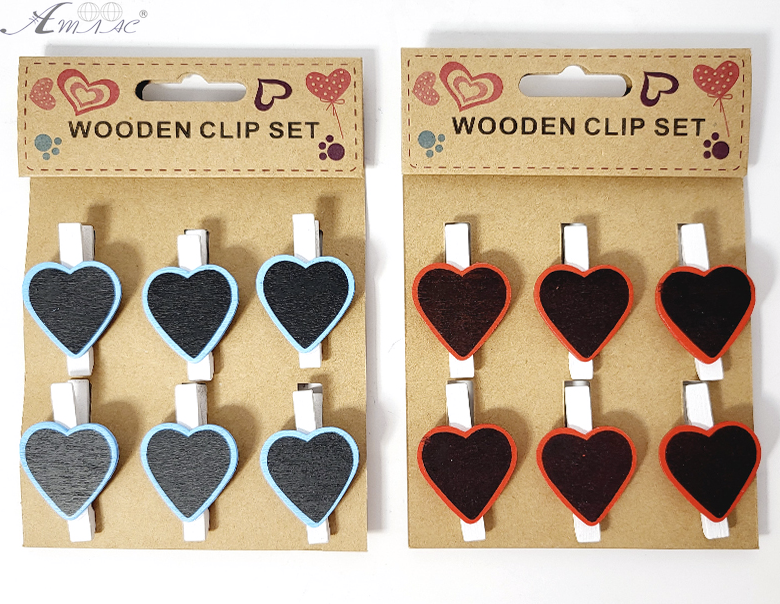 Декоративна прищіпка з серцем дерево 6шт в наборі 113-2