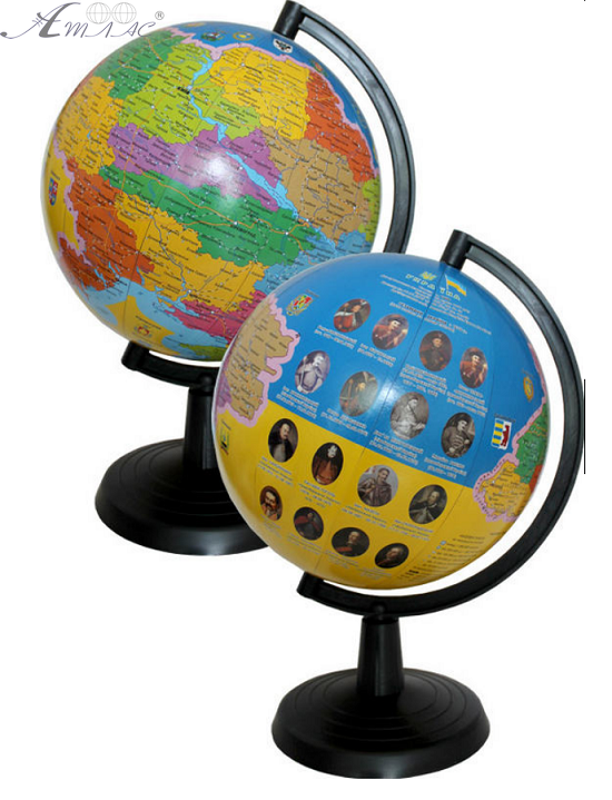 Глобус жарт політичний українською мовою, 22см діаметр. Зроблений із пластику. Фактичний відтінок виробу може відрізнятися від представленого на фотографії через особливості кольору екрану.