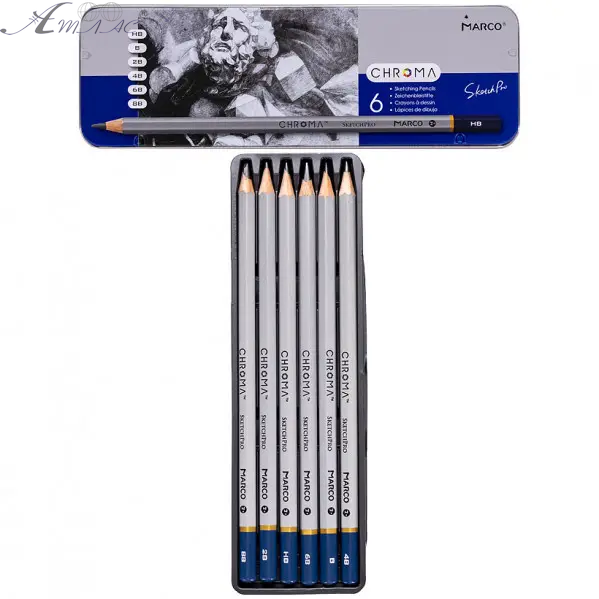 Олівці графітові набір Marсо 6шт Н-8В Chroma в металевому пеналі 8015-6TN