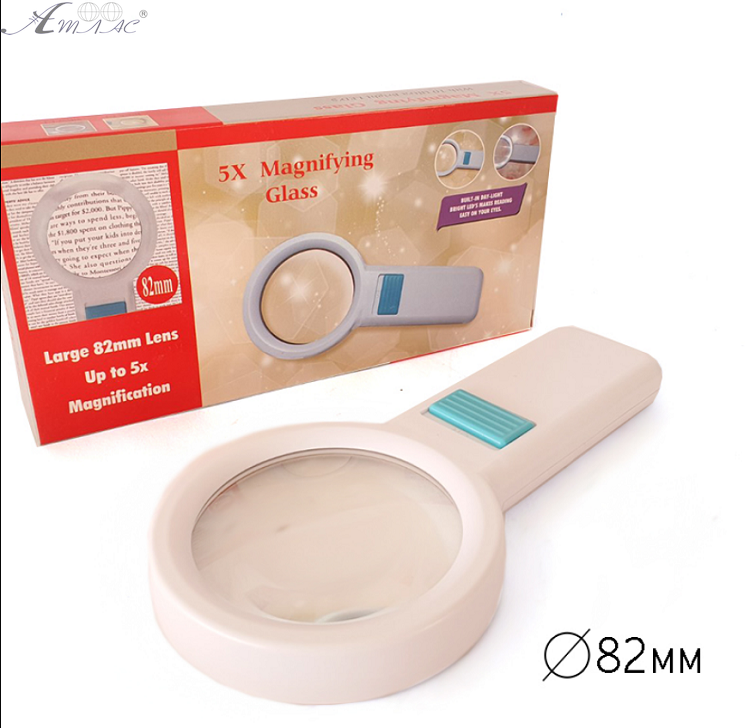 Лупа з підсвічуванням діаметром 88 мм із збільшенням у 5 разів. Підсвічування реалізовано по колу десятьма світлодіодами на двох пальчикових батареях (у комплект не входять) типу АА. Зручна широка ручка із вимикачем підсвічування. Фактичний колір виробу може відрізнятись від зображеного на фото.