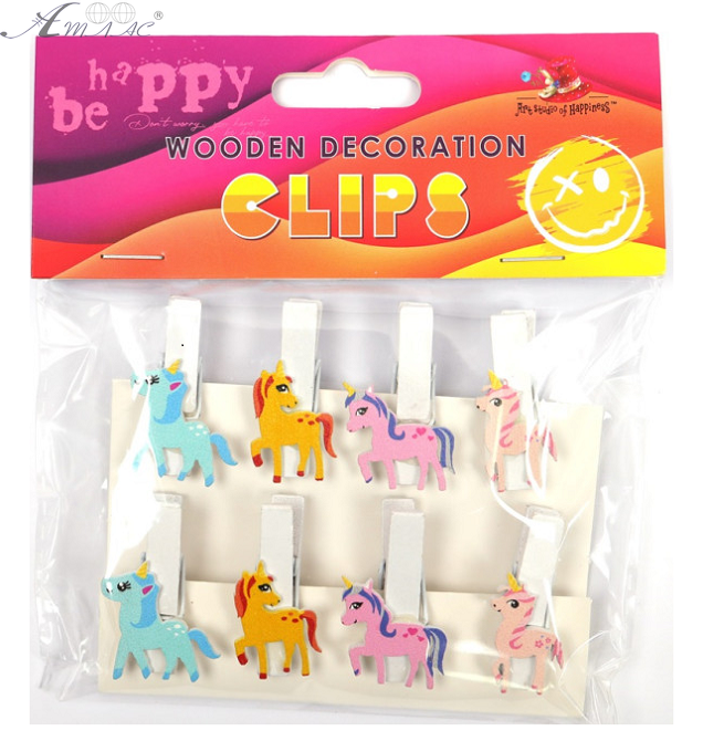 Прищіпки декоративні Єдиноріг 6 шт дерев'яні 3,5 см 200160