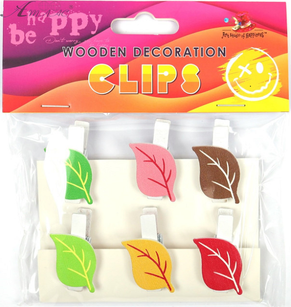 Прищіпки декоративні Листя берези 6 шт дерев'яні 3,5 см 200177