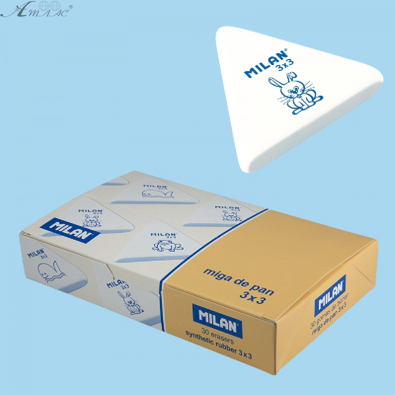Ластик Milan CNM3x3 ергономічної трикутної форми із синтетичного каучуку розміром 54 х 49 х 9 мм. Неабразивний призначений для графітних олівців. Не пошкоджує папір навіть низької якості та щільності. Фактичний колір може відрізнятись від зображеного на фото.
