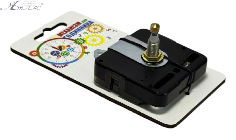 Це потужний механізм 8мм ТІЛЬКИ для великих стрілок !!! Ця модель є крокуючою, але тихою і обладнана віссю довжиною 15 мм. Механізм зі стрілками закріплений на ТВЕРДІЙ підкладці зі МДФ (стрілки продаються ОКРЕМО!) з євро-петлею для торговельного обладнання. Механізми живляться від однієї батареї АА. Фактичний відтінок виробу може відрізнятись від зображеного на фото.