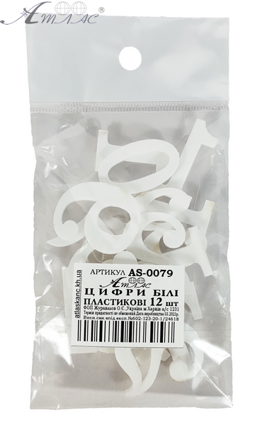 Пластикаві Цифри арабські 12шт білі 3мм h=3см AS-0079