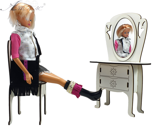 Меблі для ляльок ростом 30 см - Дамський столик з МДФ з Реальним дзеркалом AS-6001